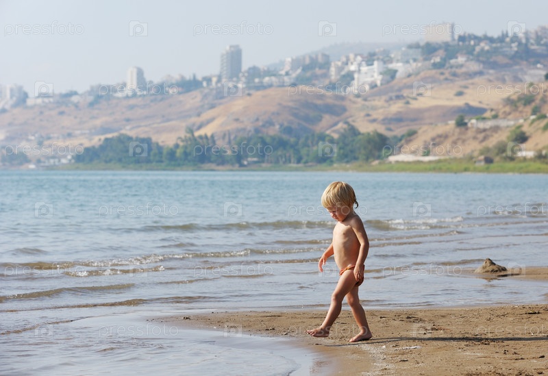 Ребенок на берегу озера Кинерет недалеко от города Тверия