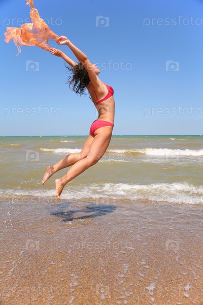 Женщина прыгает в море