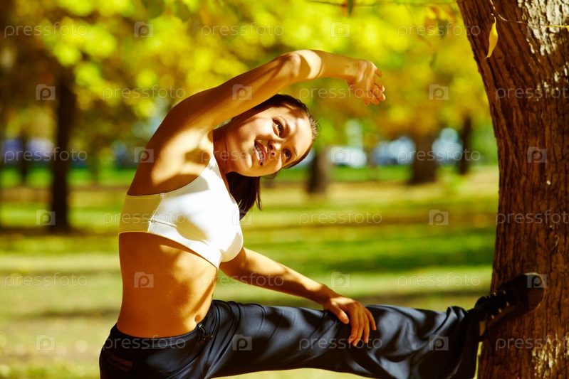 Девушка делает физические упражнения на природе