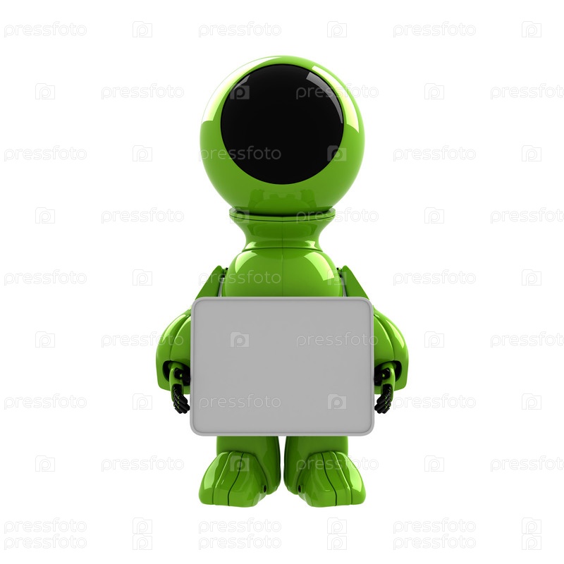 Зеленый робот с пустой табличкой