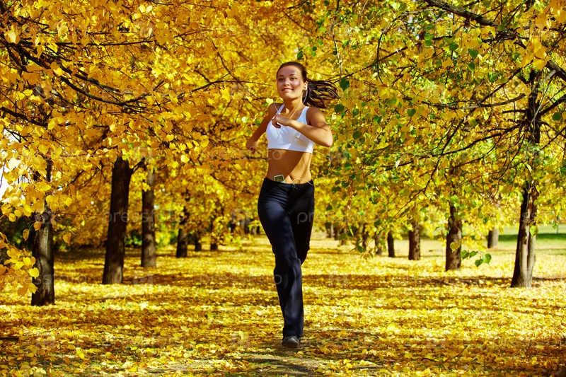 Девушка на пробежке в осеннем парке