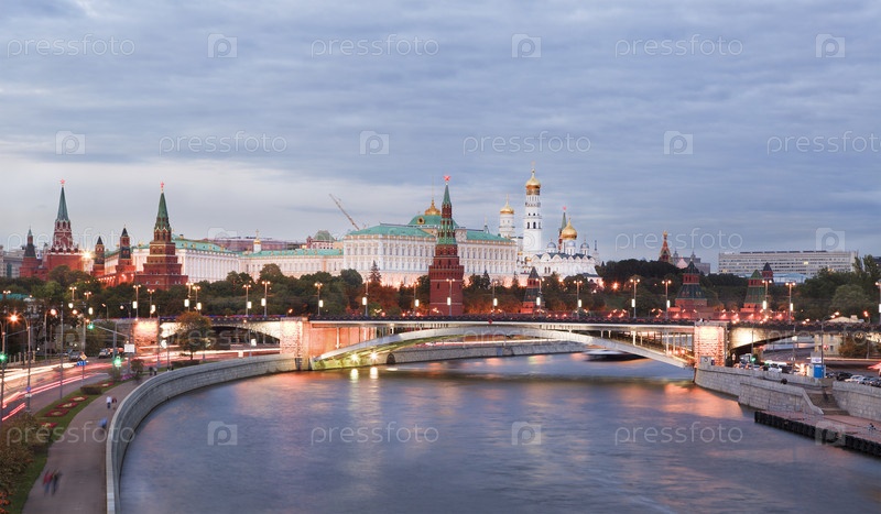 Вечерний вид на Кремль и Большой Каменный мост, Москва