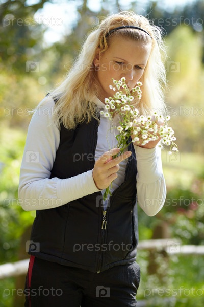 Девушка с букетом цветов