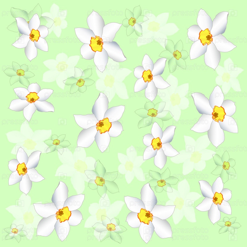 Светлый зеленый фон с белыми нарциссами
