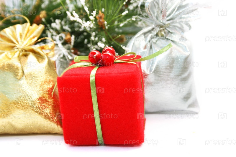 Новогодние подарки на белом фоне