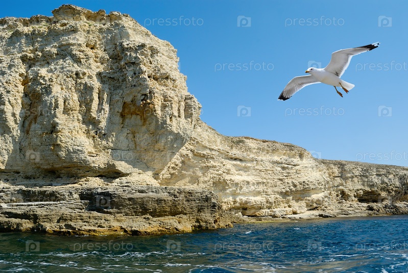 Чайка на фоне скалистой бухты