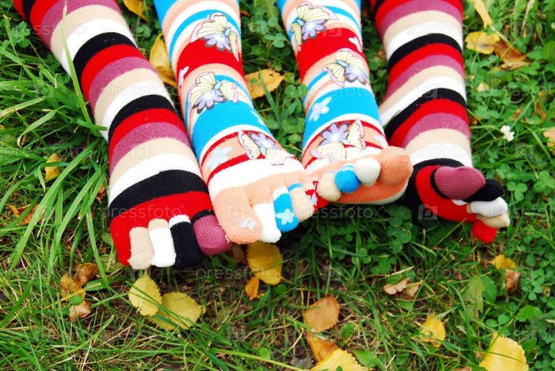 Ноги в полосатых носках на траве