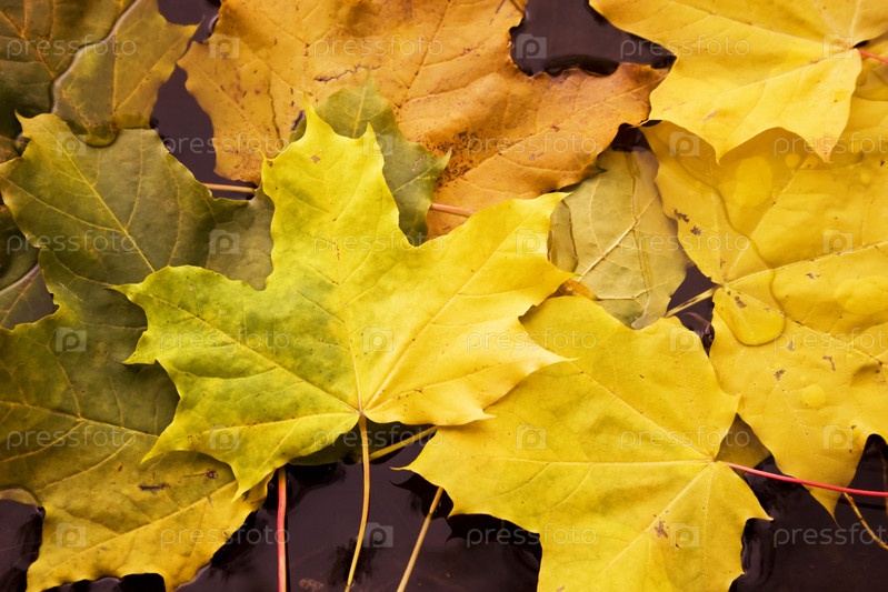 Фон из желтых осенних листьев в воде