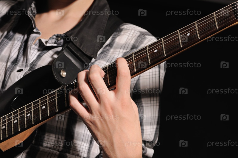 Мужчина играет на гитаре, крупный план