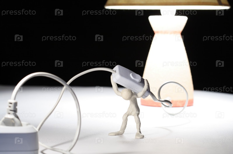 Пластилиновый человек несет кабель с переключателем на своих плечах