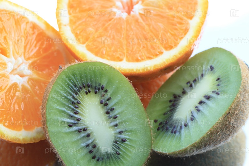 Крупным планом нарезанный апельсин и киви