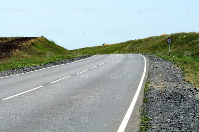 Пейзаж с пустым шоссе на фоне голубого неба