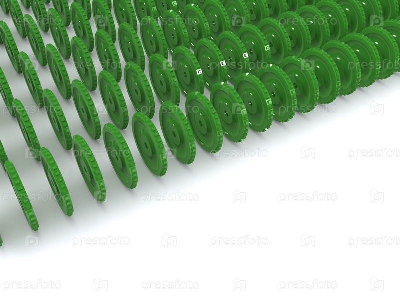 Зеленые шестеренки на белом фоне