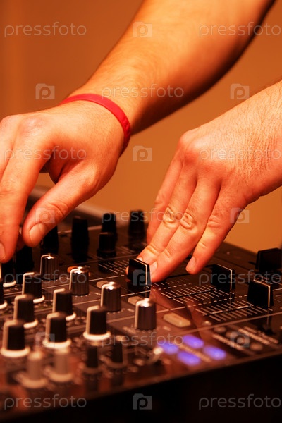 Руки диджея на профессиональной аппаратуре