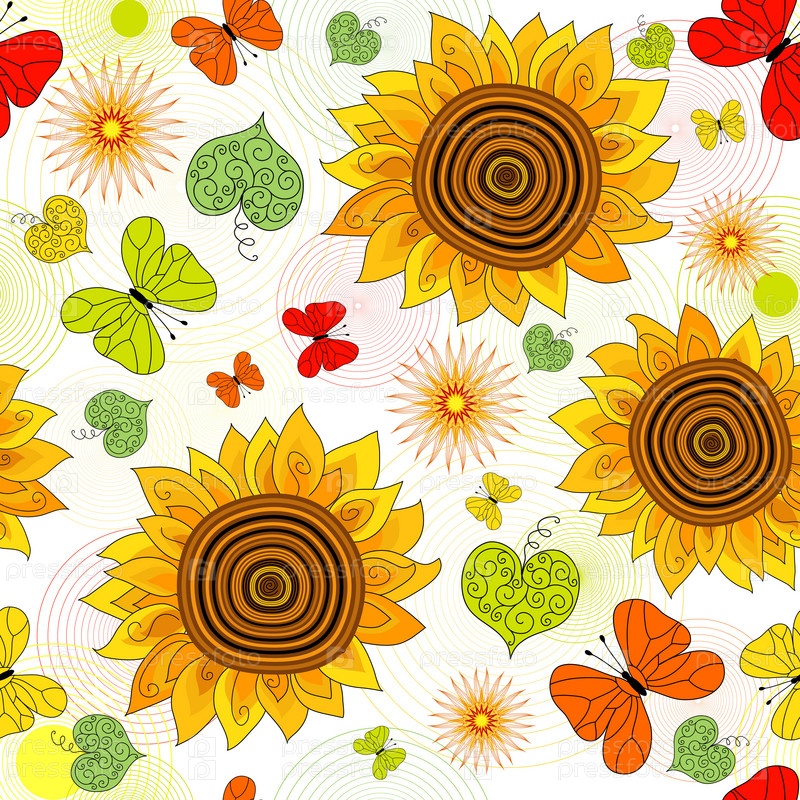 Летний узор с подсолнухами и бабочками