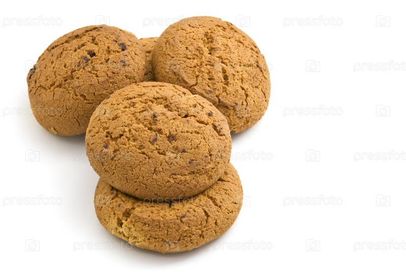 Овсяное печенье с изюмом на белом фоне