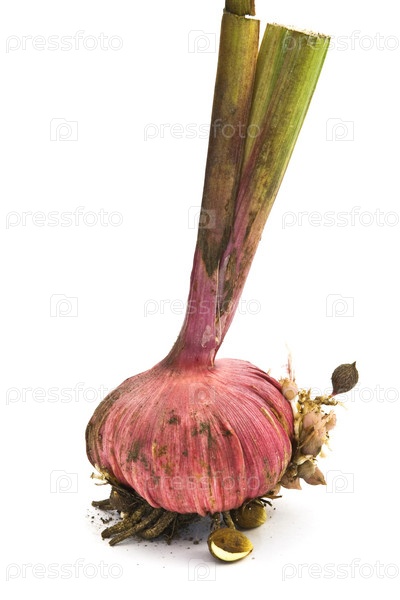 Луковица гладиолуса на белом фоне