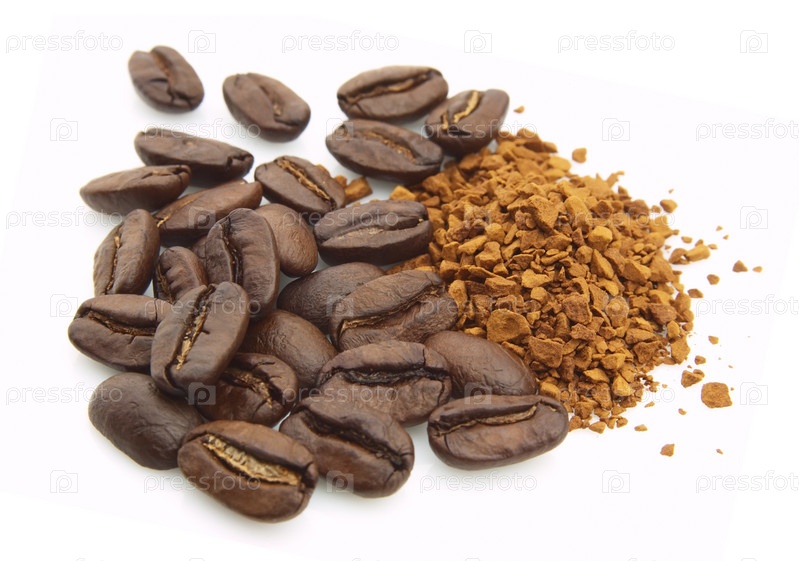 Жареные кофейные зерна и растворимый кофе