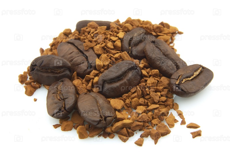 Жареные кофейные зерна и растворимый кофе