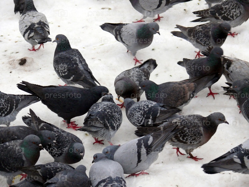 Голуби на снегу