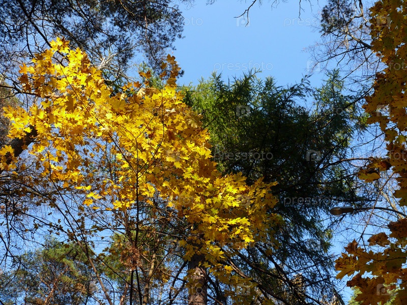 Дерево с желтыми листьями на фоне неба