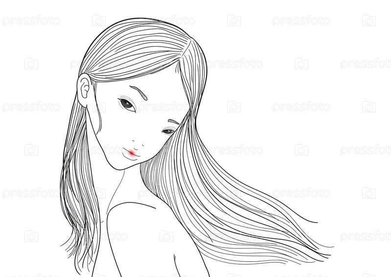 Нарисованная длинноволосая девушка, изолированная на белом фоне