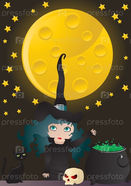 Ведьма варит зелье в полнолуние. Рисунок