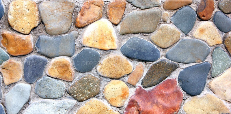 Стена дома, выложенная из разноцветных камней