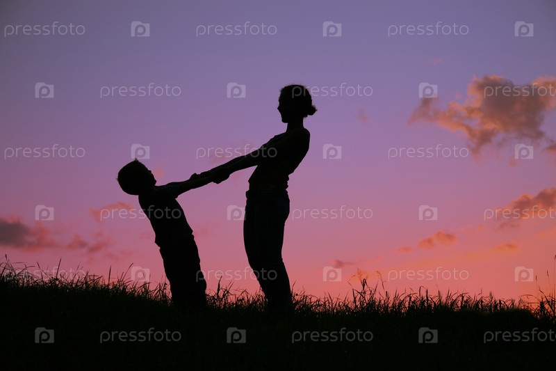 Мать с ребенком на фоне заката