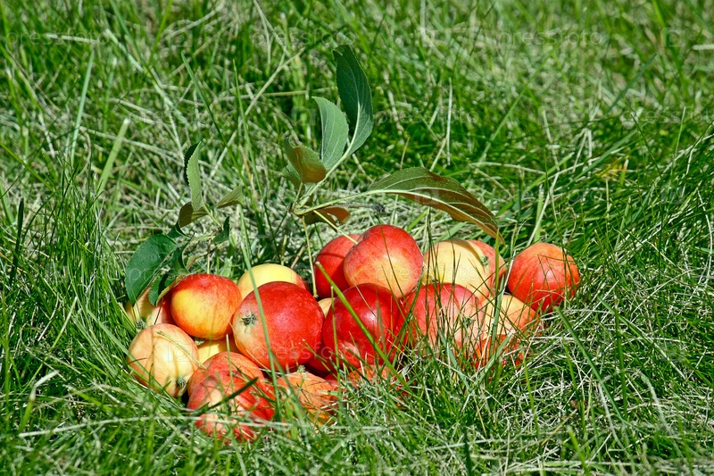 Красные яблоки на траве