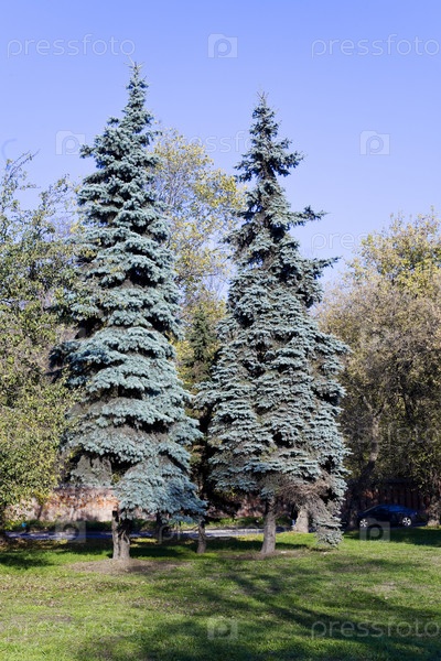 Голубые ели в парке