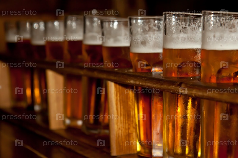 Ряд бокалов с пивом