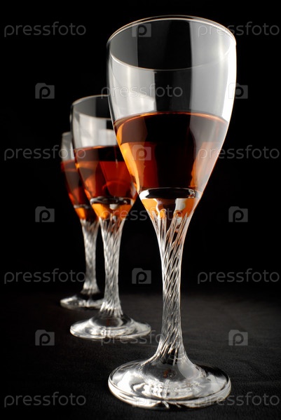 Бокалы с красным вином на черном фоне