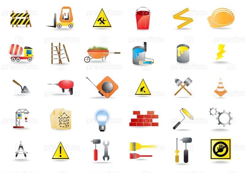 Набор рисунков на тему строительства. Изоляция на белом фоне