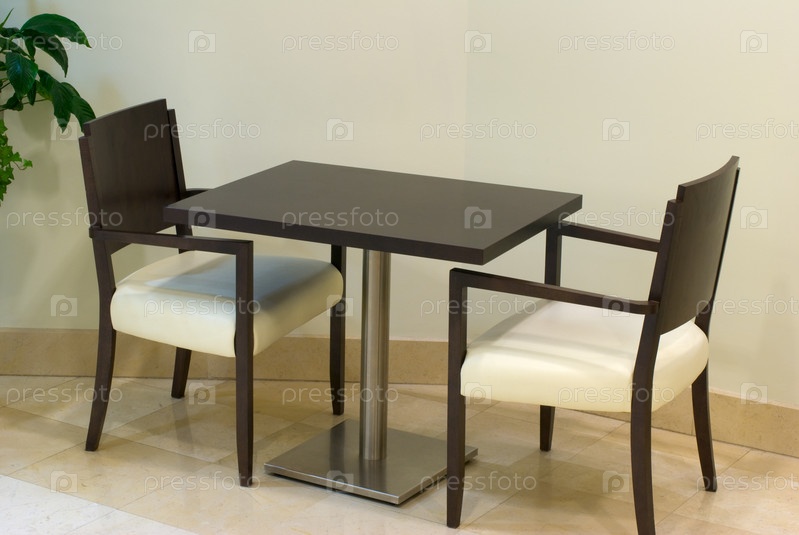 Столик с двумя стульями в коричнево-белой гамме. Интерьер гостиницы