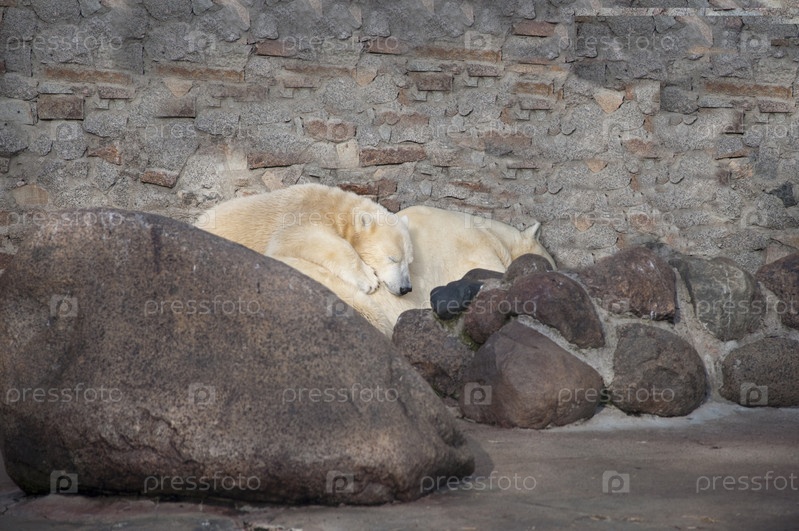 Белый медвежонок спит на своей матери