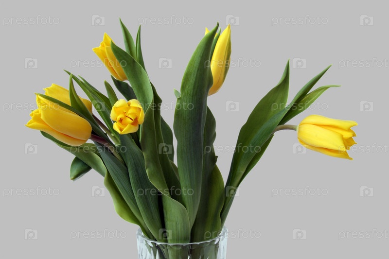 Желтые тюльпаны на сером фоне