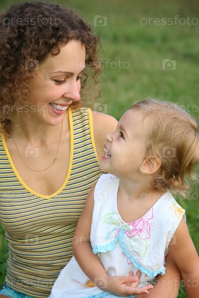 Мать с дочкой отдыхают на лугу