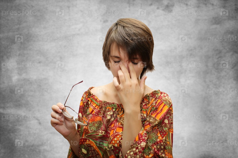Девушка с уставшими от очков глазами
