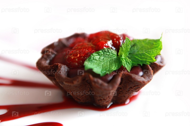 Красиво украшенное пирожное с фруктовым желе