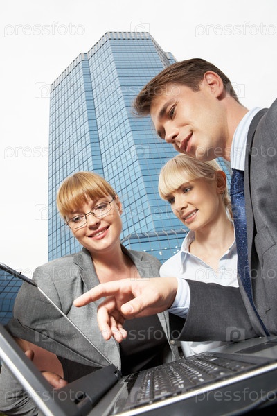 Деловые люди на фоне небоскреба