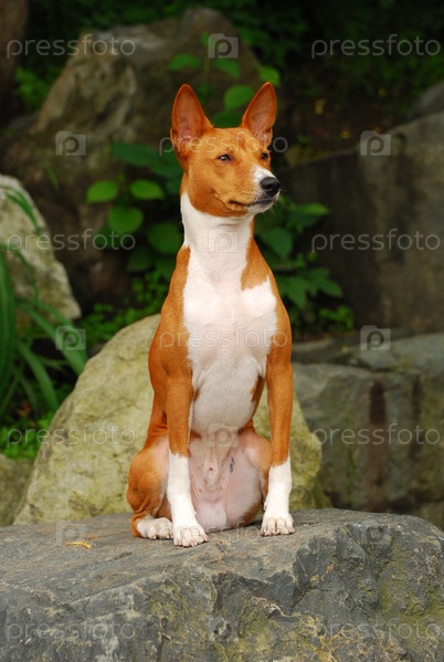 Рыжий басенджи на камне