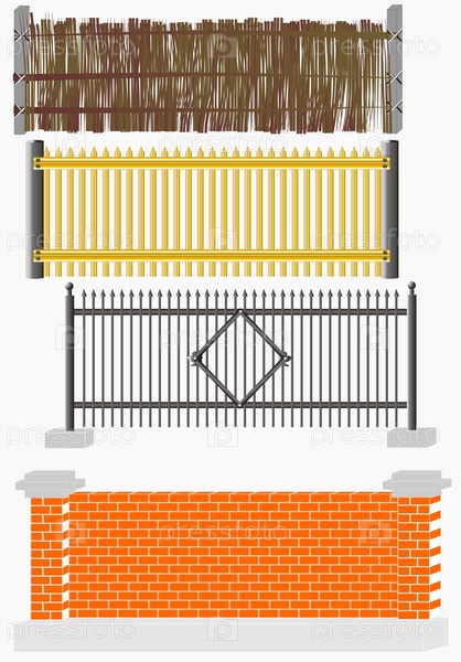Изображения различных заборов на белом фоне
