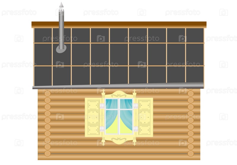 Деревянный дом с трубой на белом фоне