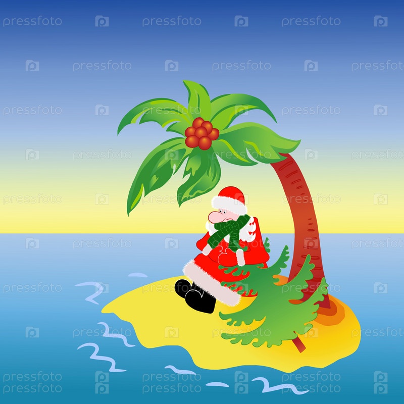 Санта на островке среди океана