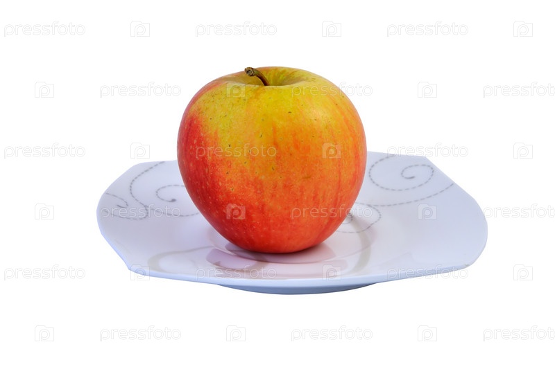 Красное яблоко на тарелке