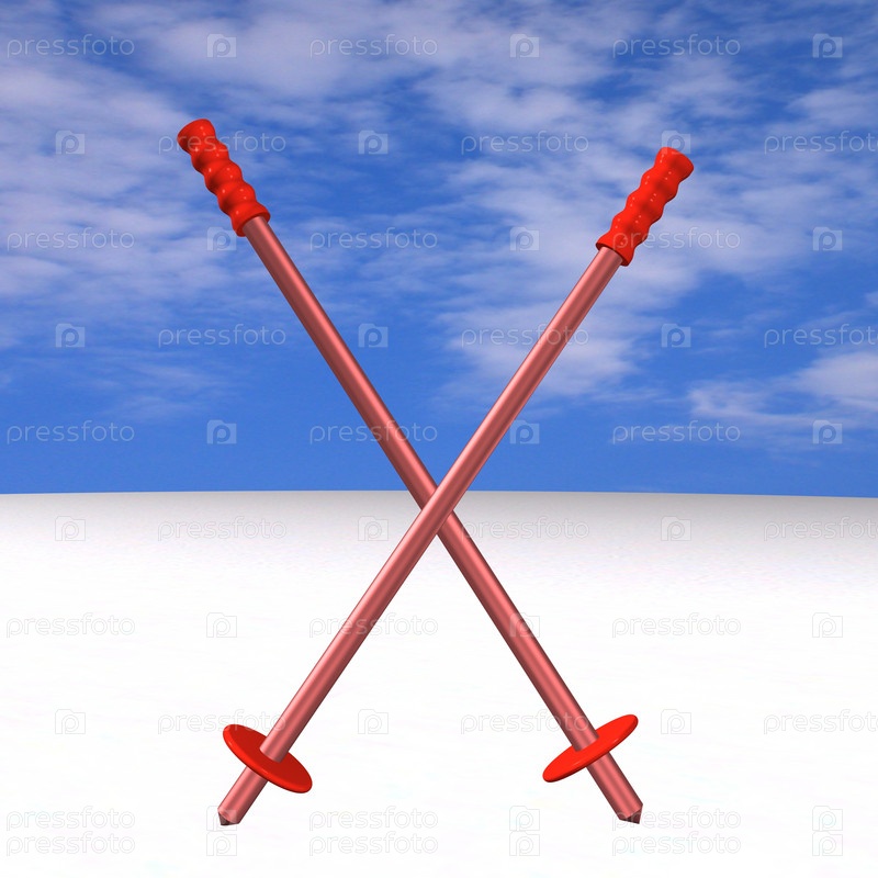 Красные горнолыжные палки в виде креста на бело-синем фоне