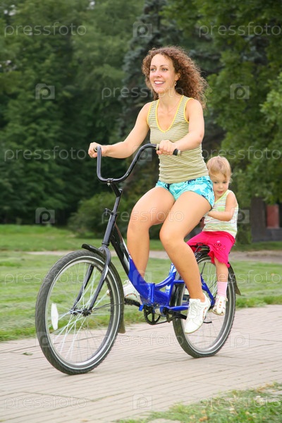 Мать и дочь катаются на велосипеде