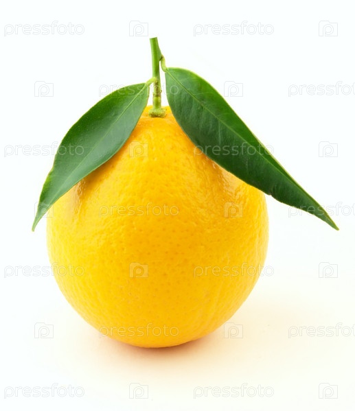 Спелый лимон с листьями