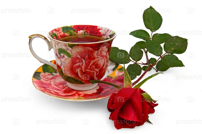 Кружка с чаем и цветок розы